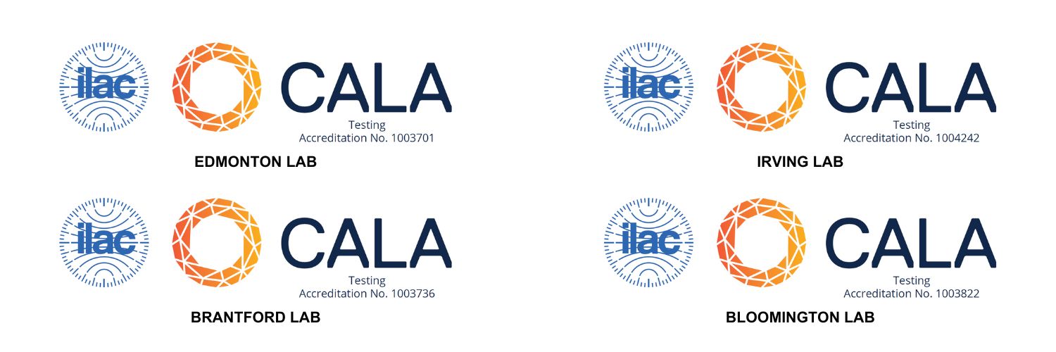 The Quality Management Systems of all of our labs are in compliance with ISO/IEC 17025:2017 for their scope of testing. This includes the use of certified reference materials, proficiency testing and documented procedures for calibration, traceability, method validations and non conformances.