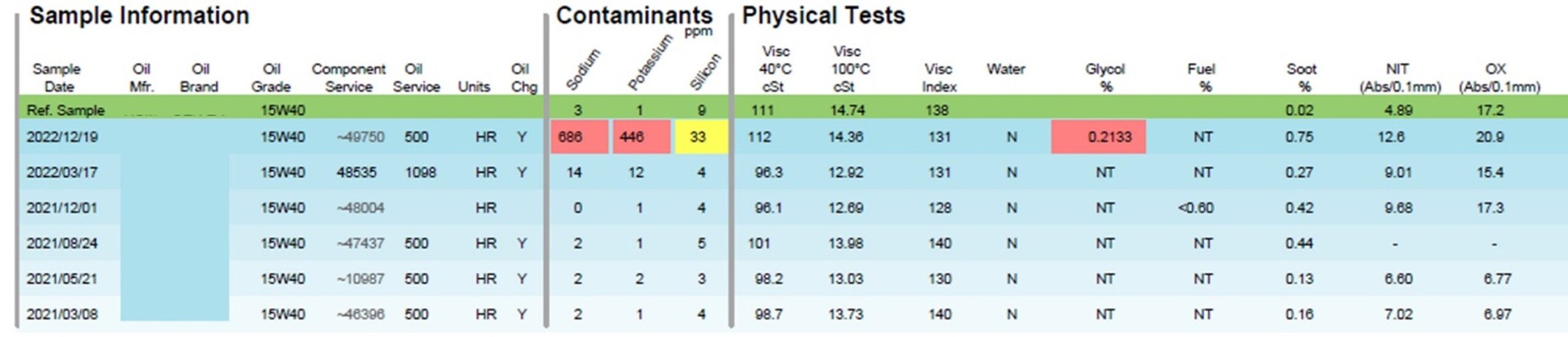 After you have fixed your head gasket issue, be sure to send a follow up sample to ensure no further contamination or wear was caused by the leak/ blown head gasket.