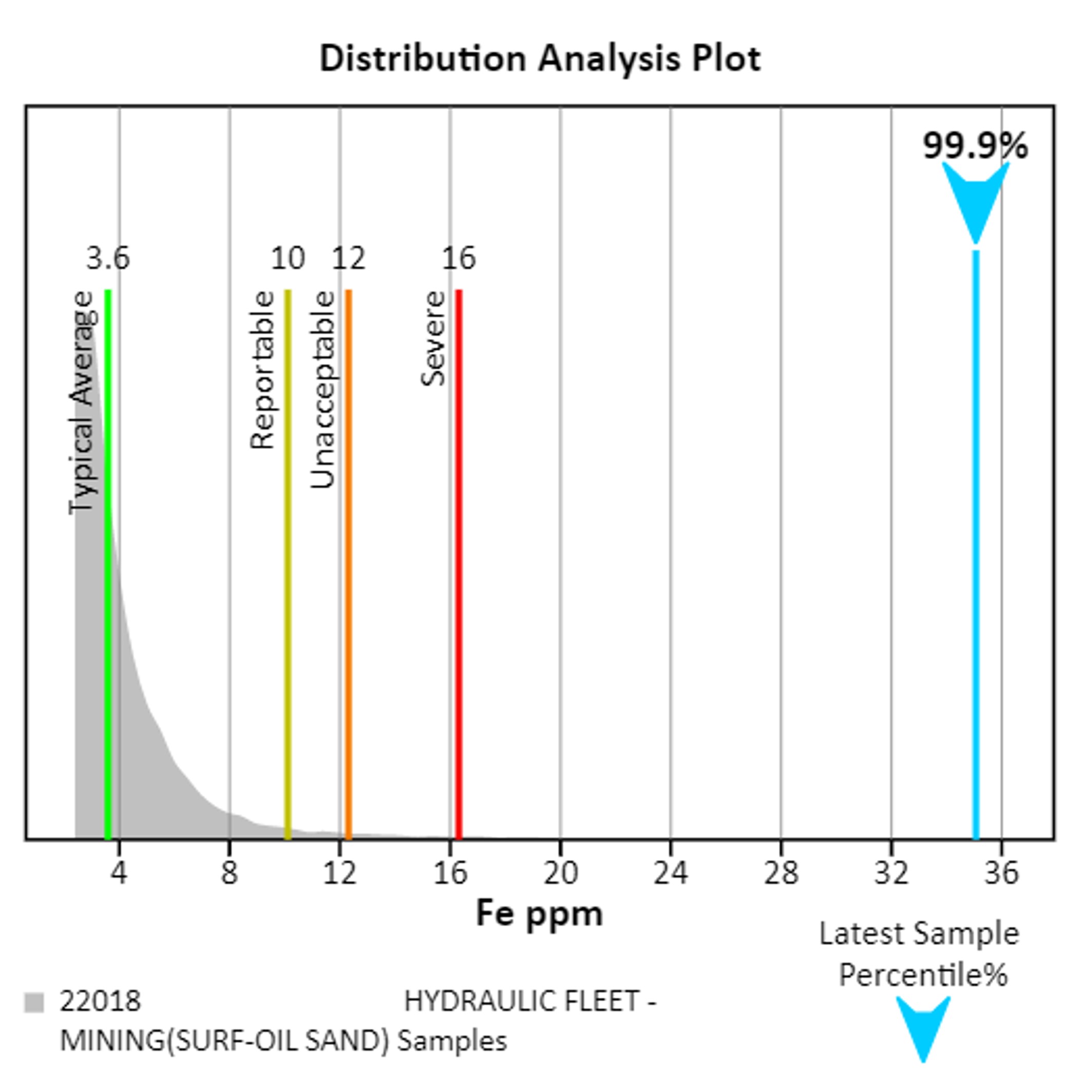 Fluid Life uses relevant historical data to create histograms (distribution plot analysis) and global flagging limits. Historical oil analysis data from different users is assigned to a histogram based on component type, equipment manufacturer, equipment model, oil type (manufacturer, brand, and grade), industry, and equipment application. Fluid Life’s Global Flagging Limits are applied as a default to oil analysis reports if the other two types below are not requested by the user.
