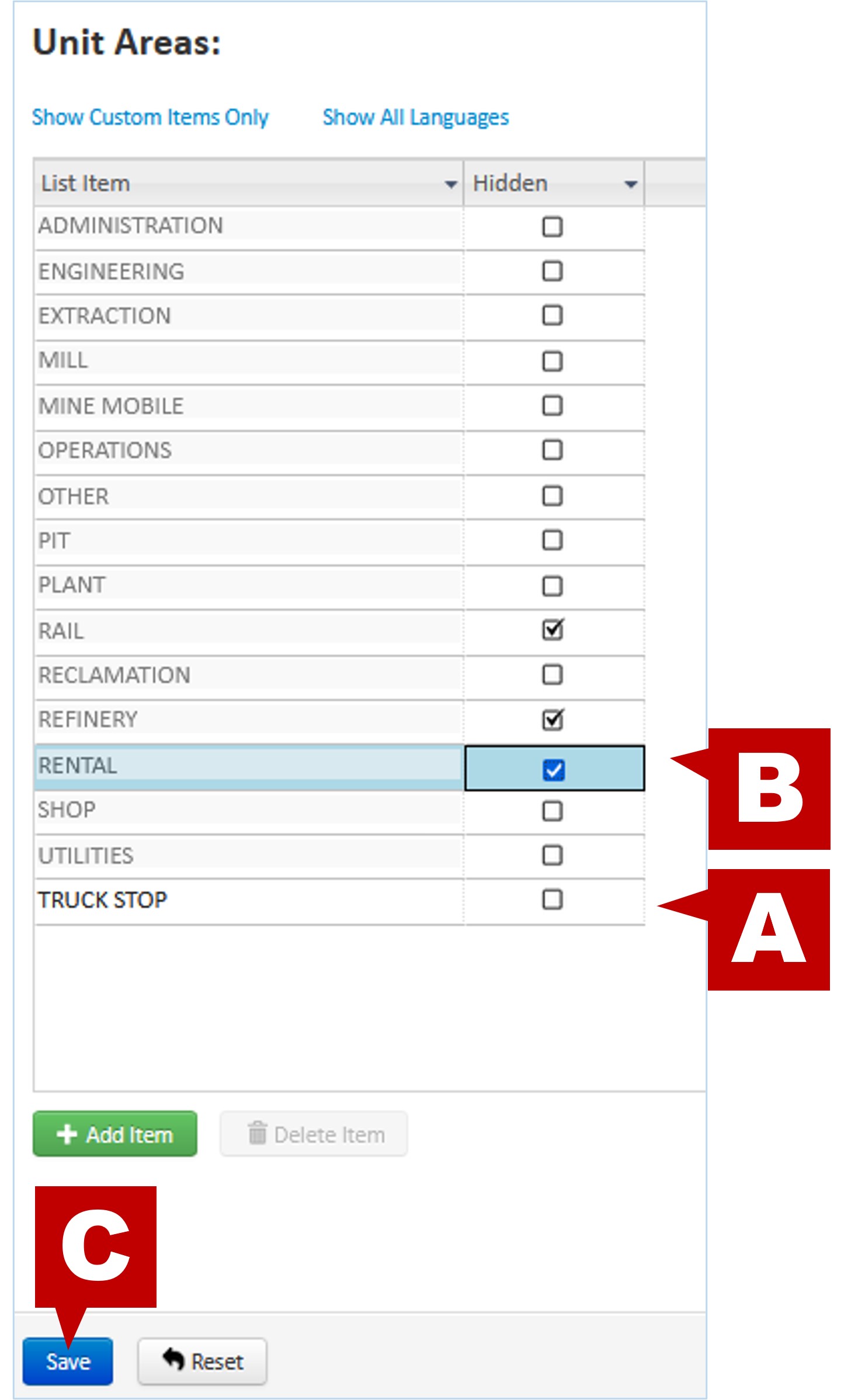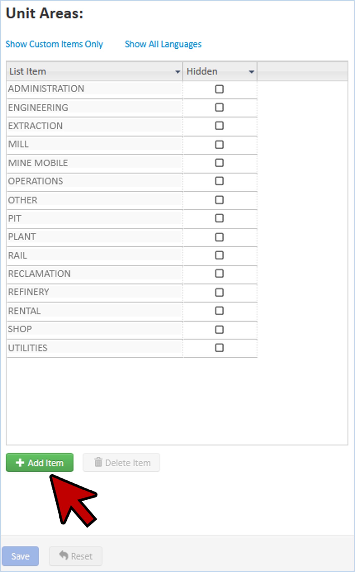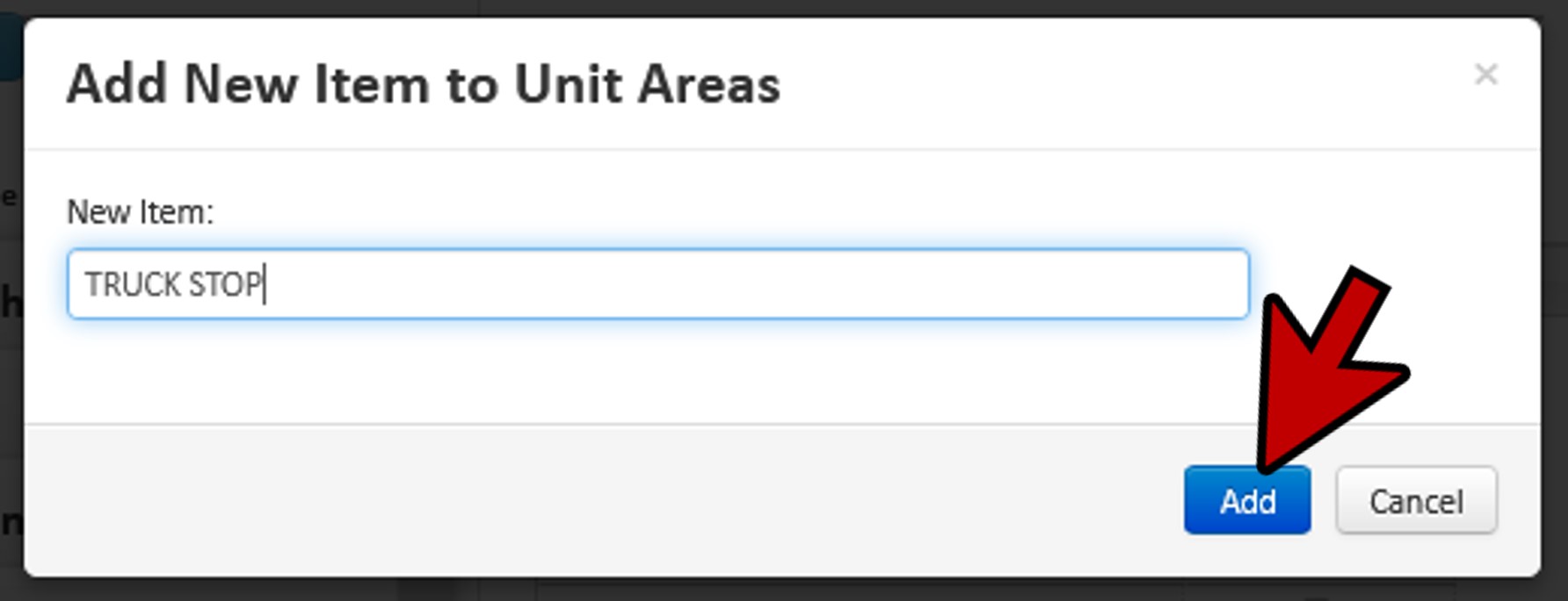 To review how to add a custom entry to a drop list, we will walk through an example to add a Unit Area called Truck Stop.