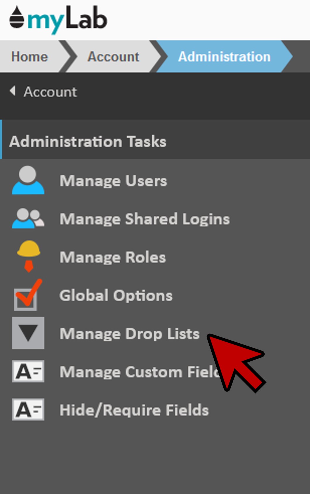 - myLab gives you the ability to add custom entries to your drop lists as well as hide ones you don’t use.
