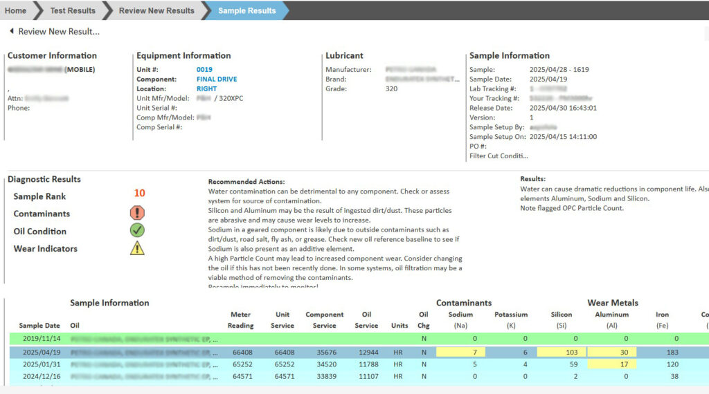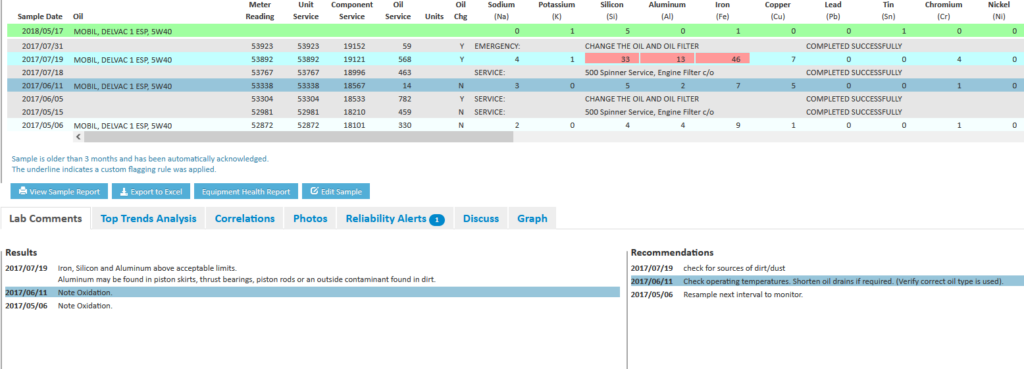 Viewing Oil Sample Results