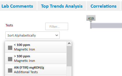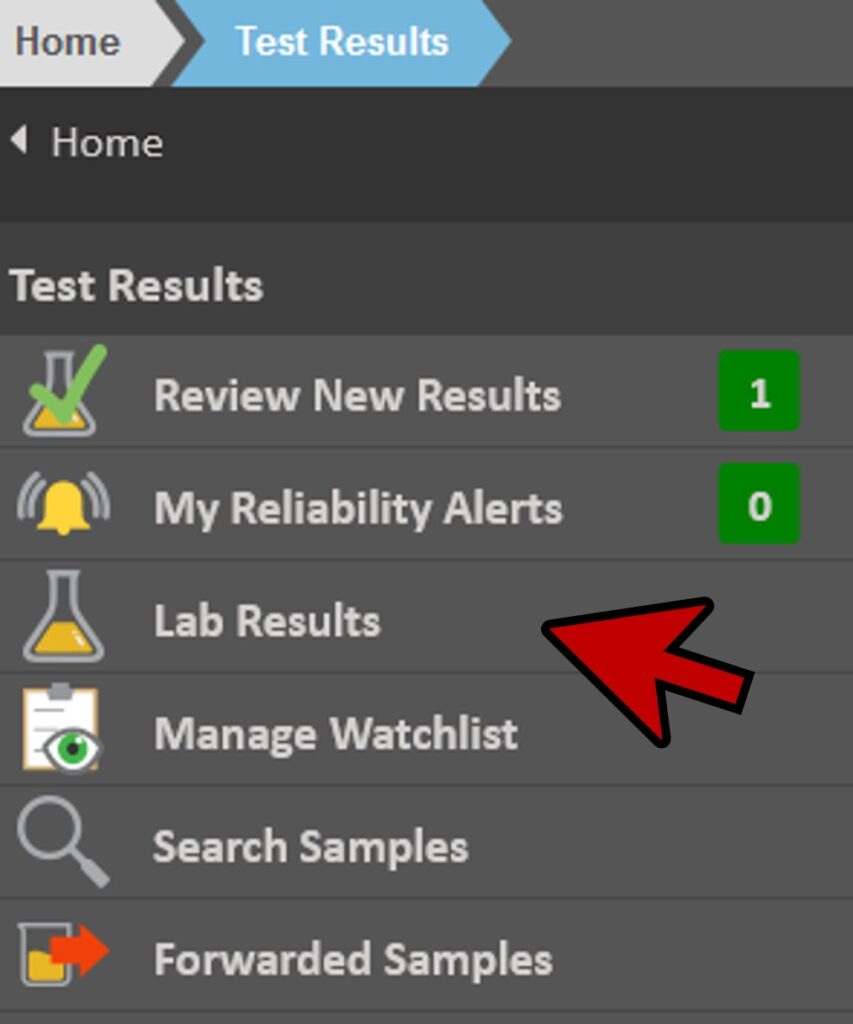 - From the Home page, select Test Results, then Lab Results to open the Oil Sample Results window.