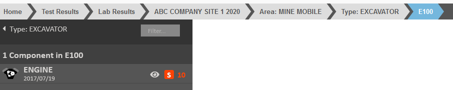 - Open the latest oil analysis results window for the following Unit Area, Unit Type, Unit and Component.