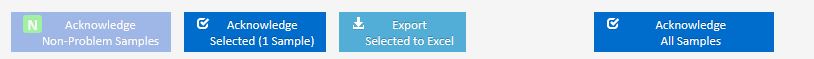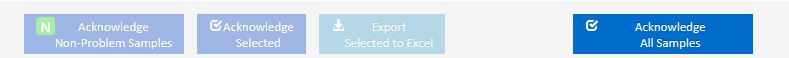 - The buttons at the bottom of the window allow the user to either: Acknowledge all Samples, Acknowledge Non-Problem Samples, manually Acknowledge Selected samples, and Export Selected to Excel.