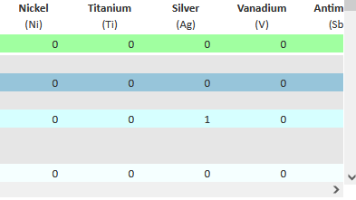 - Using the scroll bars, move up/down and left/right through the oil analysis data.