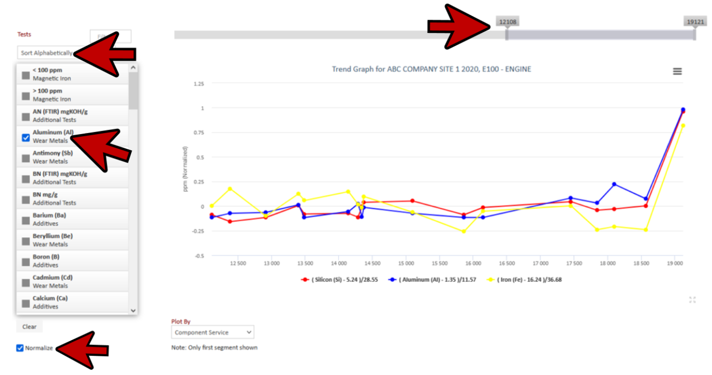 - You can Plot By: Component Service, Sample Date, Meter Reading, Unit Service and Oil Service.
