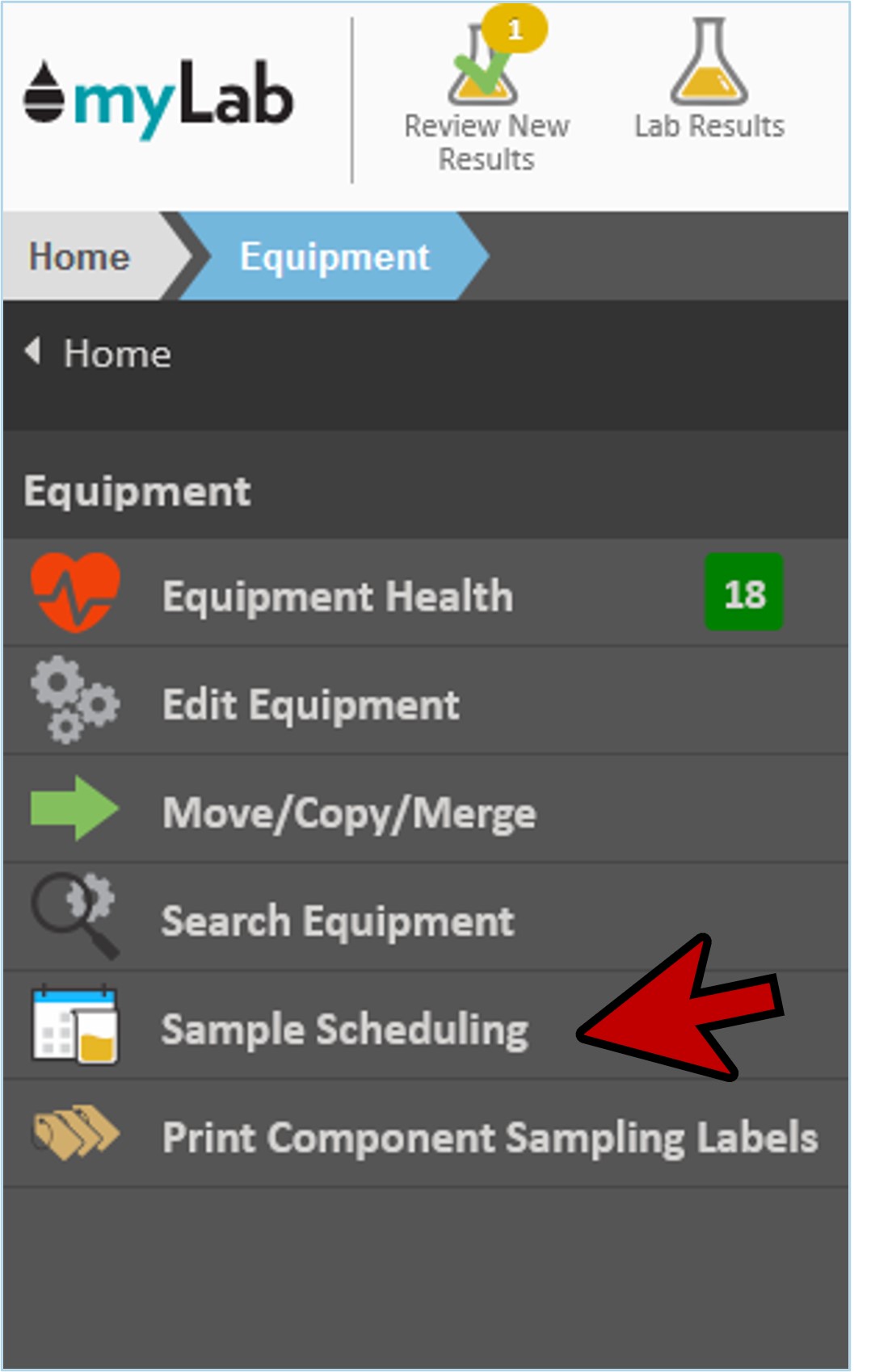 • From the Home page, select “Equipment” in the left menu and then click “Sample Scheduling”