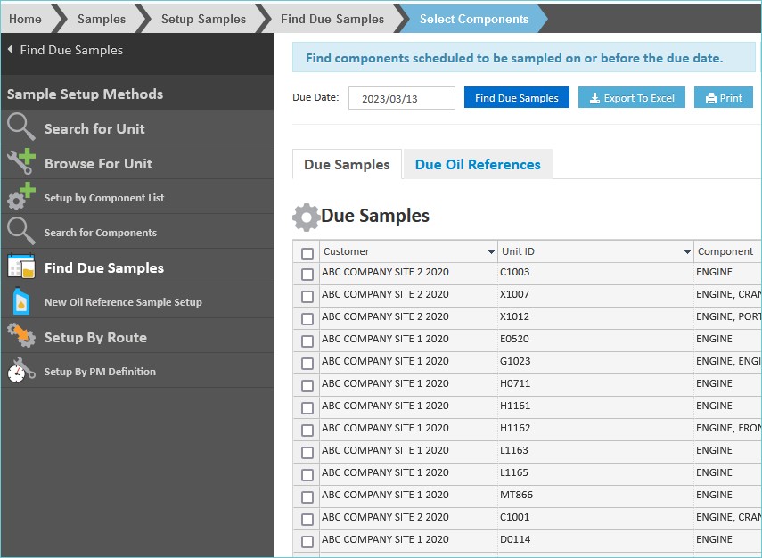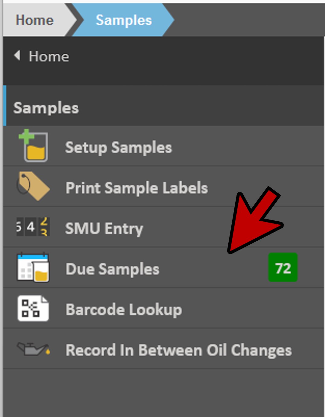 • In the next menu, you will see a green indicator with the number of samples currently due.