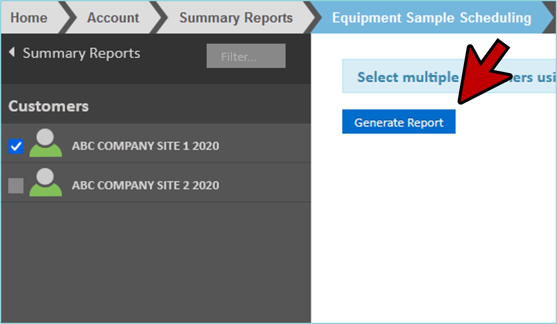 • As with Scheduled Components, select the Customer and click the “Generate Report” button.