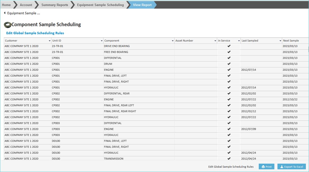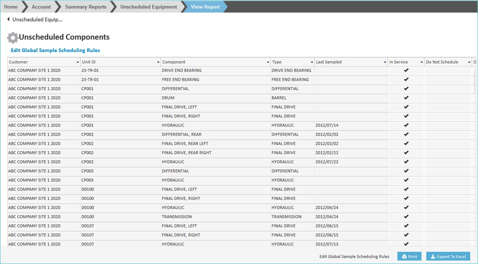 • This creates a spreadsheet of all components for that customer and how they are scheduled.