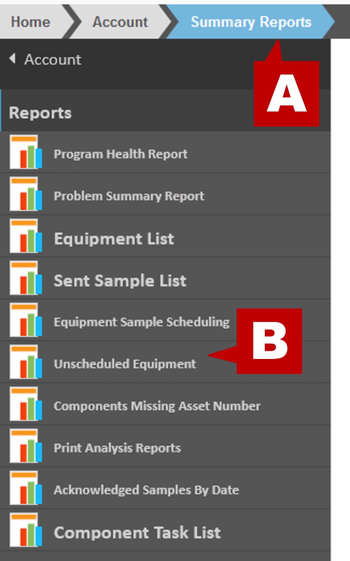• From here you can also view if you have any components without a schedule on the Unscheduled Equipment Report.