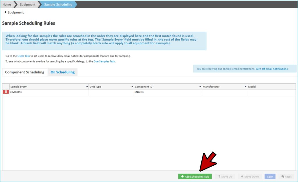 • At the bottom of the screen, click the green “Add Scheduling Rule” button.