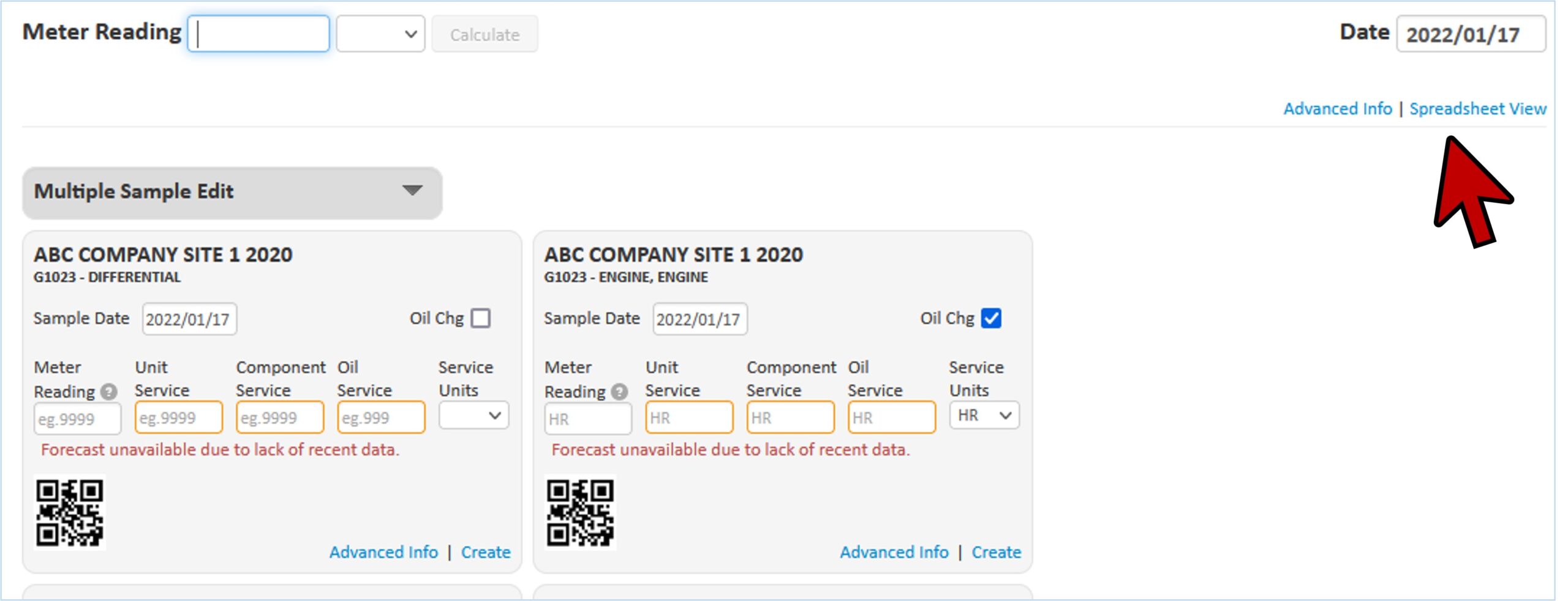 - If you have a lot of samples to work with at the same time, it may be easier to use the spreadsheet view.