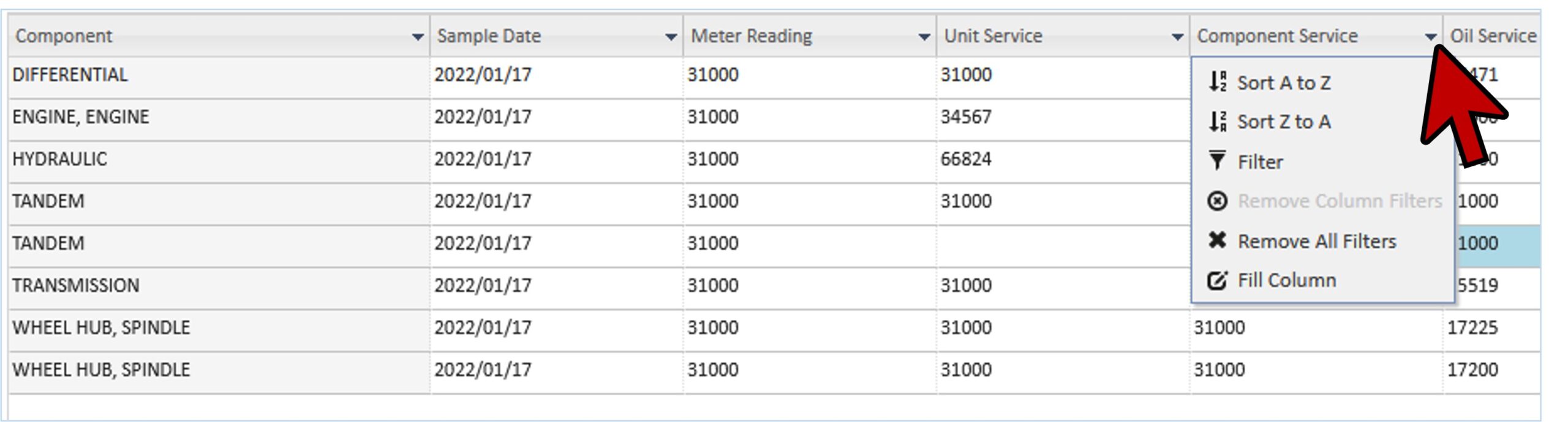 - You can also filter, sort, and fill entire columns using the pull down tools.