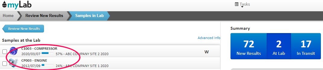 • Once Fluid Life has completed the analysis of your samples, the results are published, and sample status will update to “New Results”. This means the sample report is available to be viewed.