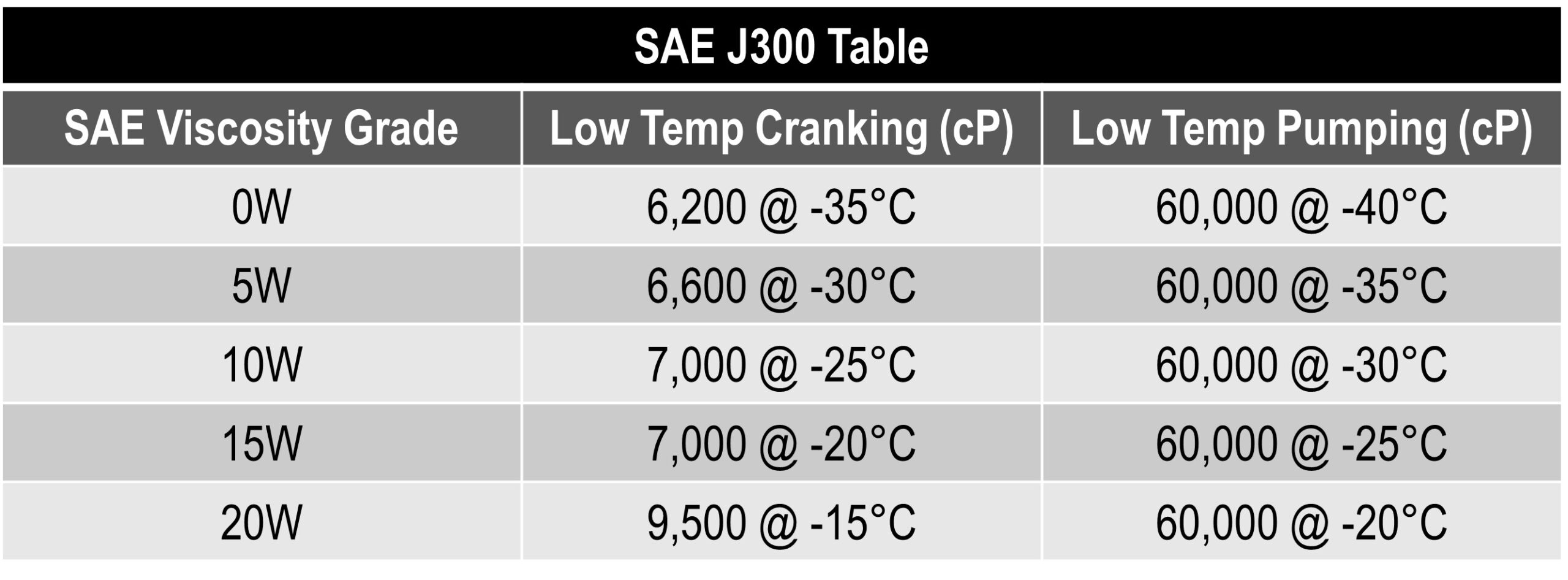 - For multi-grade oils (i.e. 15W40), ONLY the ‘40’ is defined by Kinematic Viscosity at 100C. The cold weather characteristics (‘15W’) are based on a measurement of low temperature cranking and low temperature pumping characteristics. Therefore, it is a bit of a misnomer to utilize kinematic viscosity at 40C to define the cold weather properties of an SAE oil (even though there is a relationship).